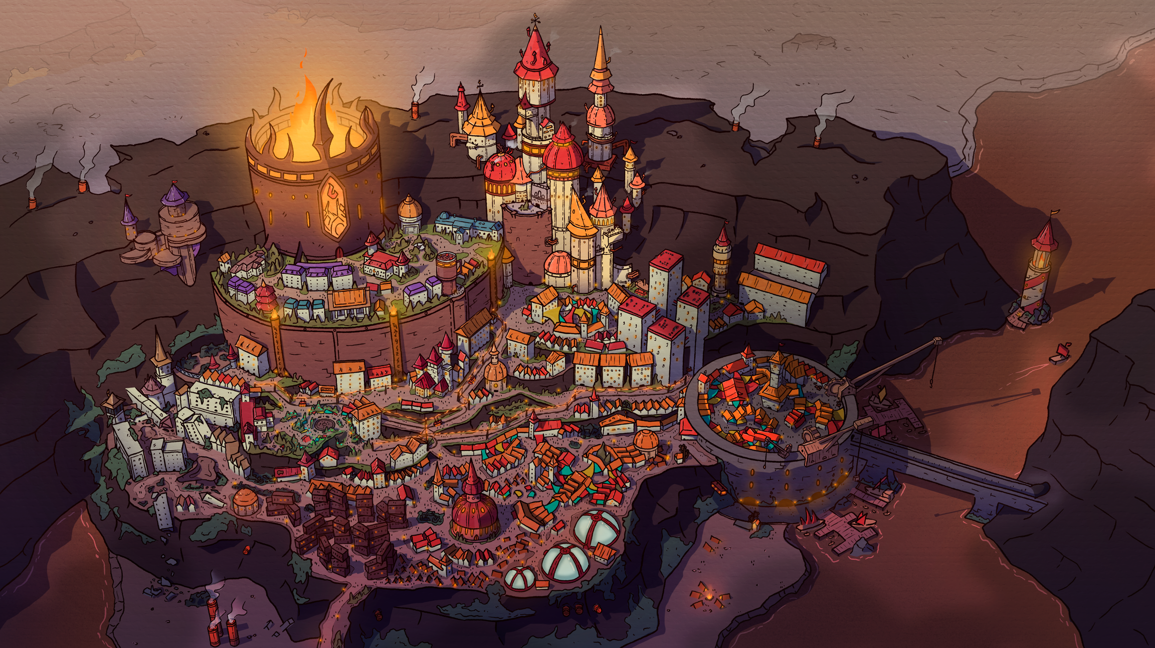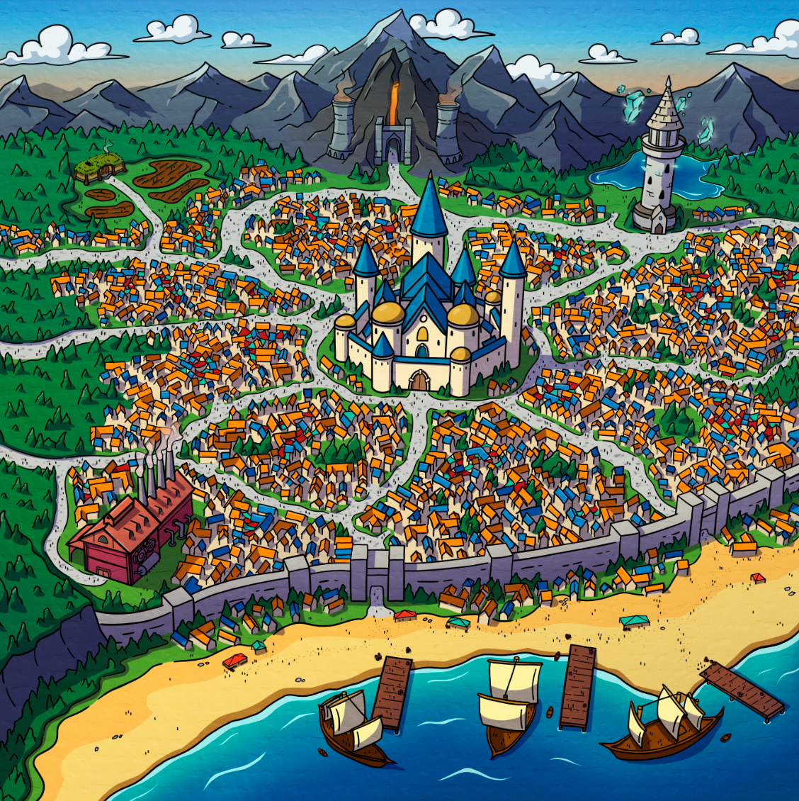 Maps of cities and key locations, designed to highlight important structures, routes and points of interest in your world