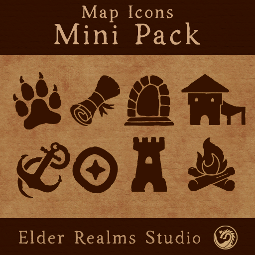 A Fantasy Map Icons Starter Pack for VTT maps. Including 62 unique icons with two versions each: bordered and borderless (124 files total)